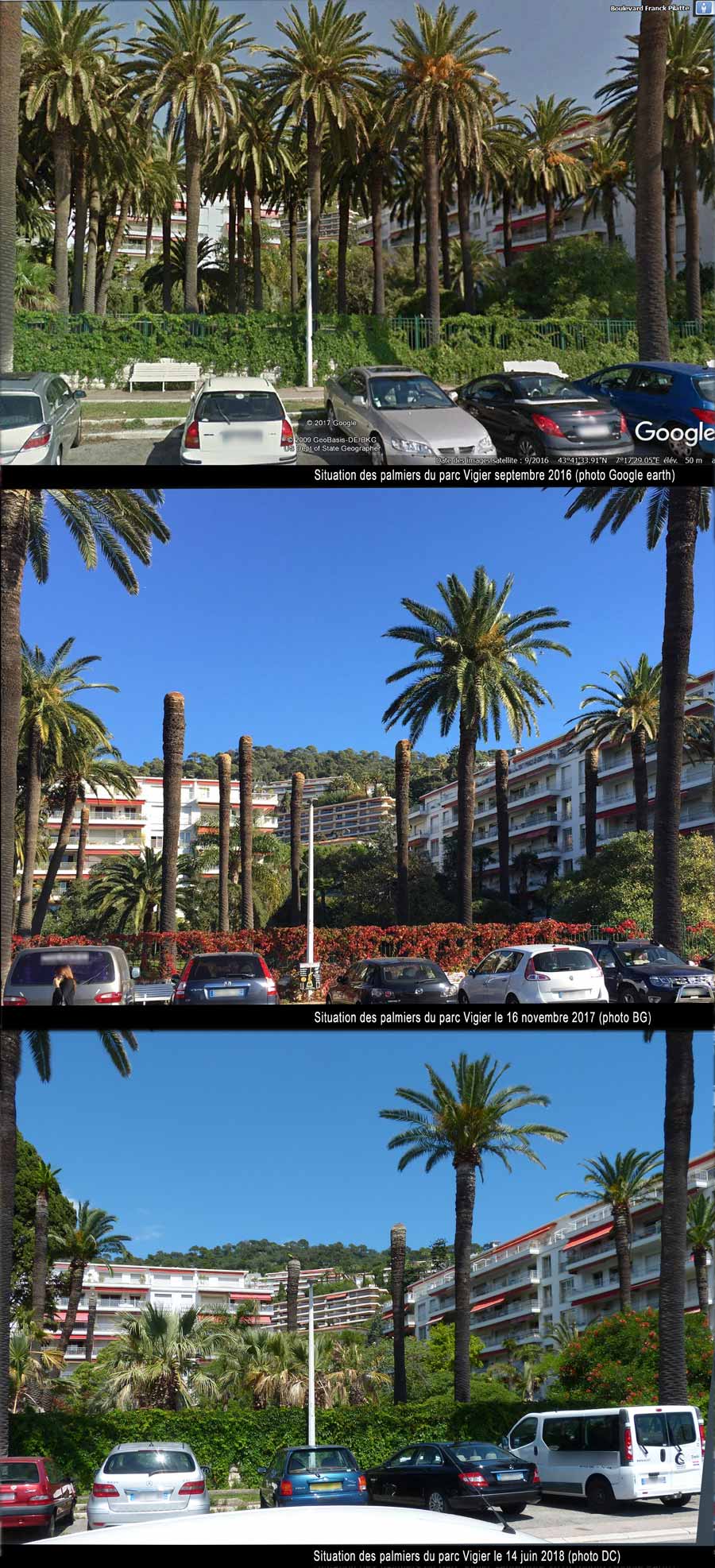 Evolution de la situation des palmiers historiques du parc Vigier entre septembre 2016 et juin 2018
